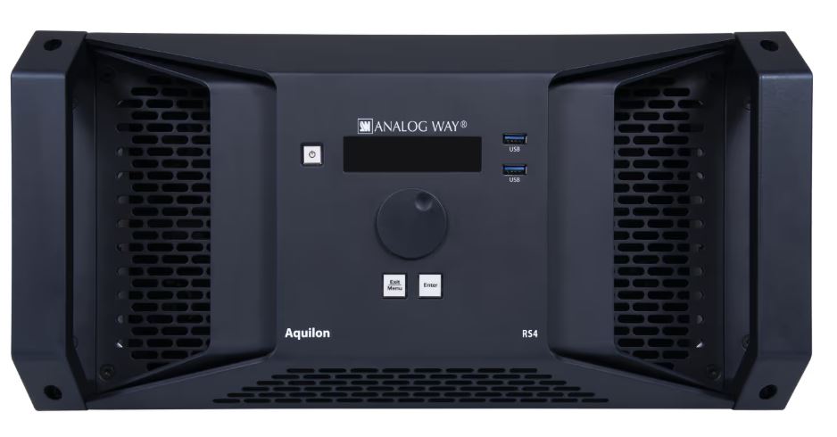 Aquilon RS4 is a mission-critical 4K/8K multi-screen presentation system and videowall processor with 24 inputs and 16 outputs, delivering uncompromising presentation experiences to high-end staging and premium system integration.